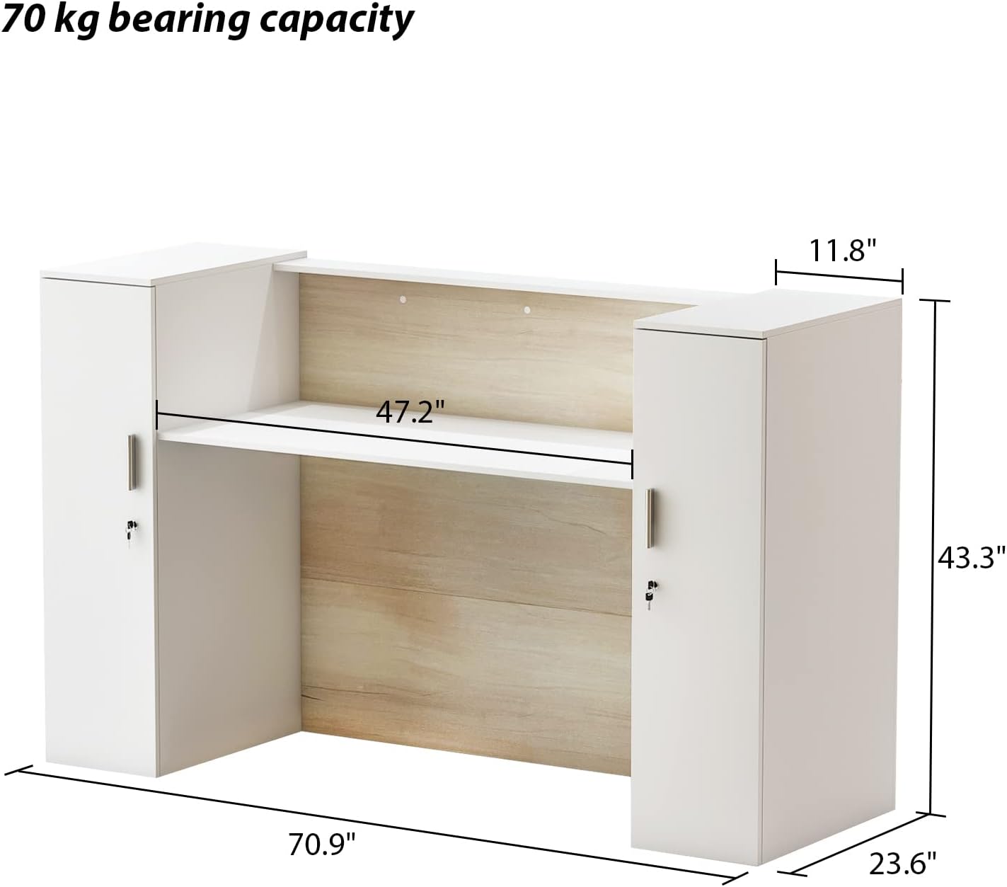 AIEGLE Massive Reception Desk with Counter, Retail Counter with Non-public Lockable Storage & Adjustable Cabinets, for Salon Reception Room Checkout Workplace, Pure and White (70.9″ W)