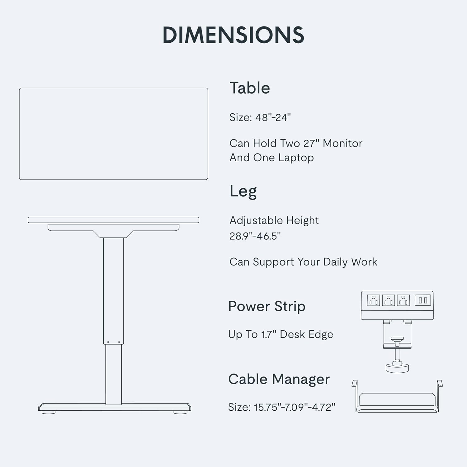 4 MEMORY BUTTONS: Simply change between sitting and standing positions with our 6-button digital controller that options 4 programmable reminiscence presets. The motorized height-adjustable system adjusts easily from 28.1” to 45.7”, and the motor runs quietly at lower than 50 dB.