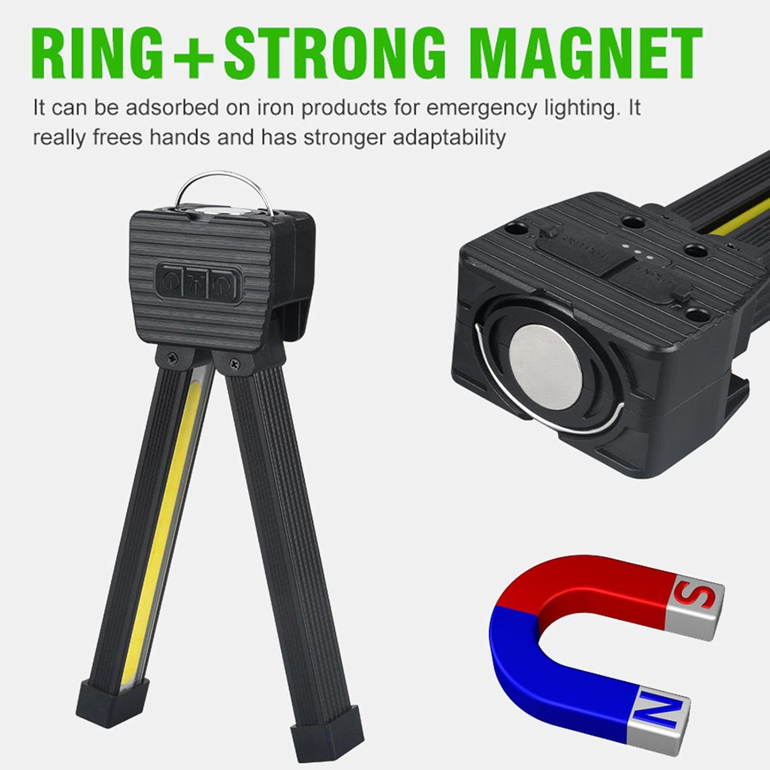 Versatile Design: Foldable LED work mild with magnetic base and hook, might be firmly mounted on metallic floor or held on hook.