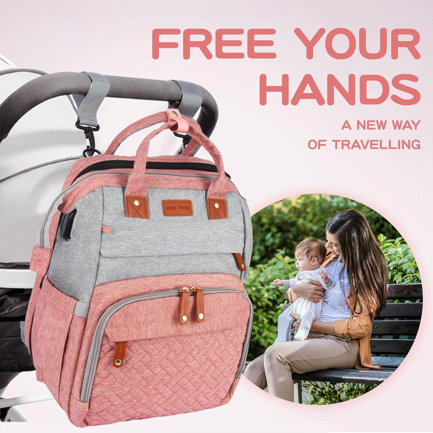 JOYCE Diaper Bag Backpack, with Altering Desk Backpack, 900D Oxford Fabric, Massive Capability Diaper Backpack, 3 in 1 Multifunctional Journey Child Diaper Backpack (pinkish grey)