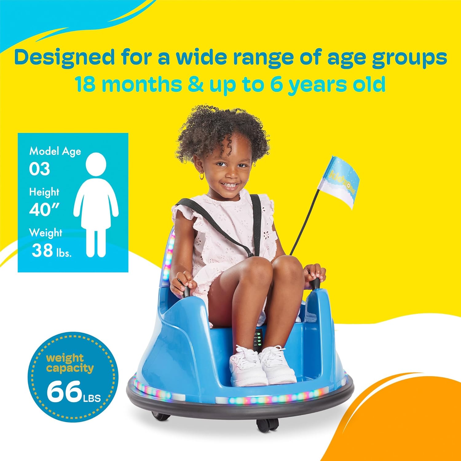 [Safety and Durability] The electrical bumper automotive is product of sturdy and non-toxic plastic. It options adjustable 5-point seat belts, anti-flat tires, and a cushioned rubber on the backside to cut back bumps. Because of a gradual begin safety-feature, each trip is clean and simply managed. It complies with ASTM/CPSIA/CPSC/CA Prop 65/FCC security laws, and comes with a racing flag for elevated visibility.