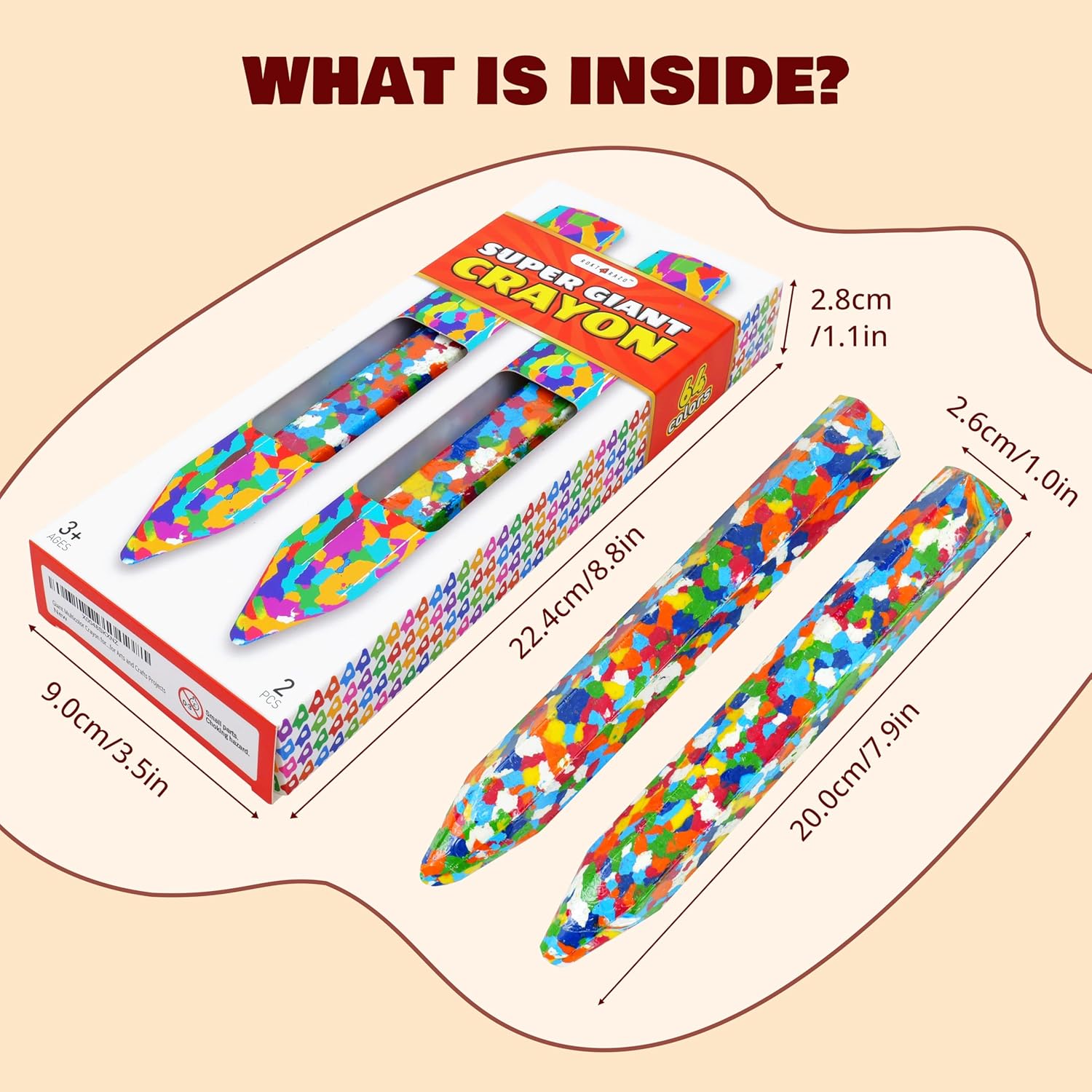 Multicolor Crazy Giant Crayon Pack, 2PC, 8 inches Long, Perfect for Arts and Crafts Projects, Jumbo Crayons, Huge Kids Crayons