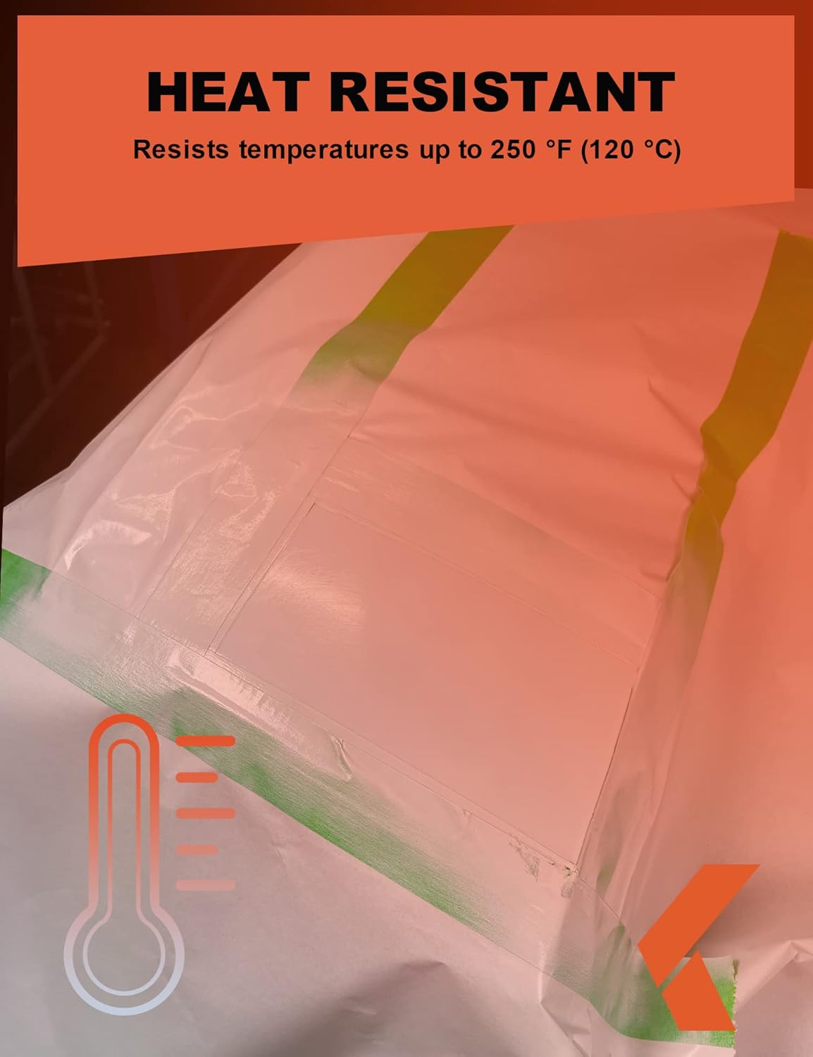 HEAT RESISTANCE: With a temperature use range of 120°C in the paint booth, this painter tape enjoys a flexible design and is easy to use and remove, ideal for professional auto body painting work. Its robust paper backing resists solvents and moisture while being flexible enough to fit most curves and contours.