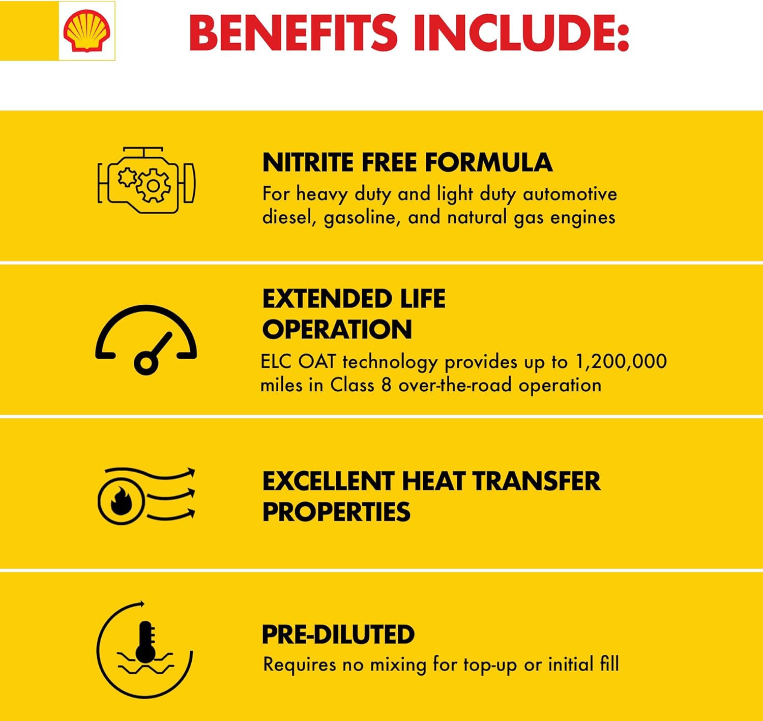 Formulated with Shell Rotella ELC OAT know-how for prolonged life operation as much as 1,200,000 miles in Class 8 over-the-road operation