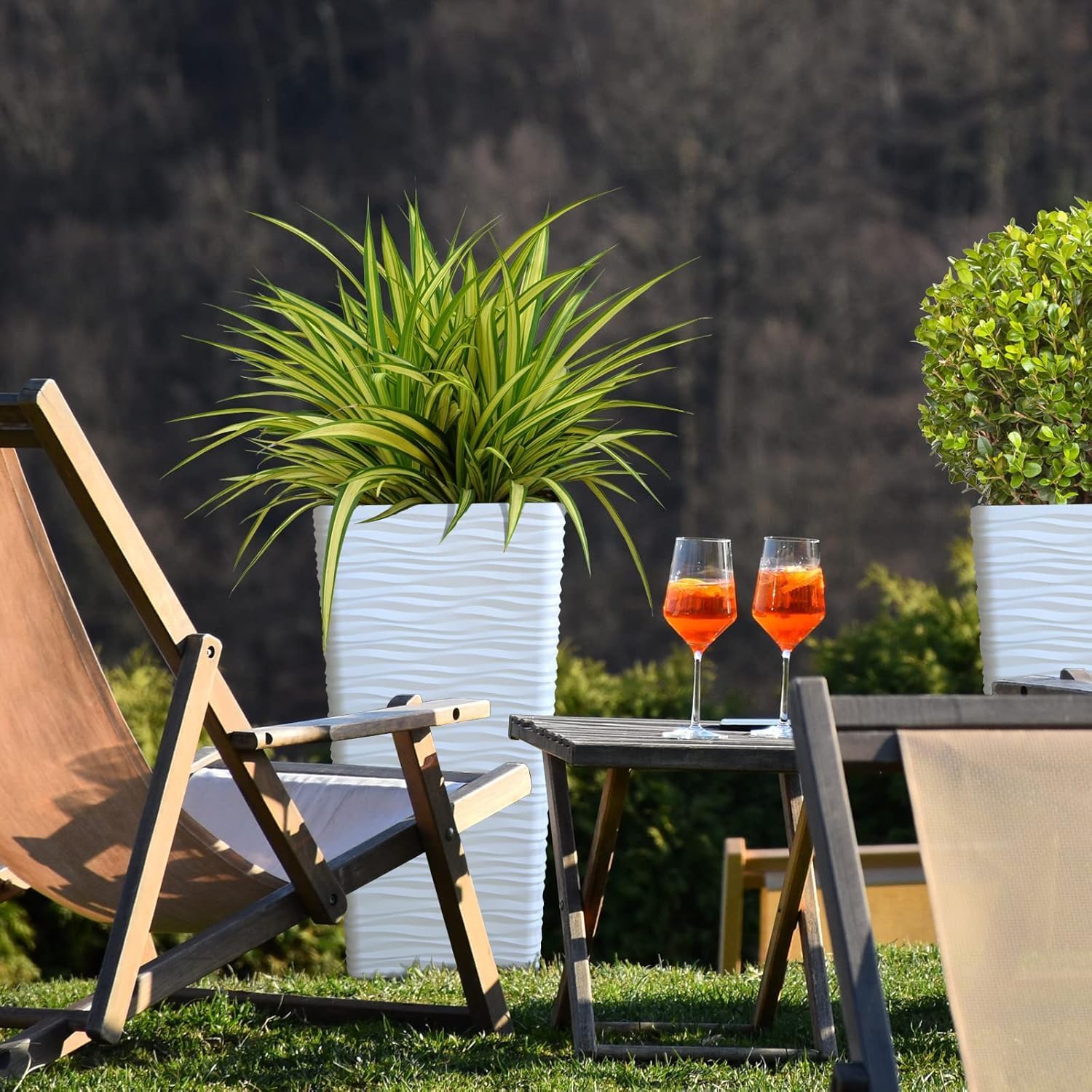 Price Backyard 22″ Tall Planters Set of two – Plastic White Sq. Plant Pots – Fashionable Large Tapered Matte Wavy Tree Flower Pot for Indoor Out of doors Porch Deck